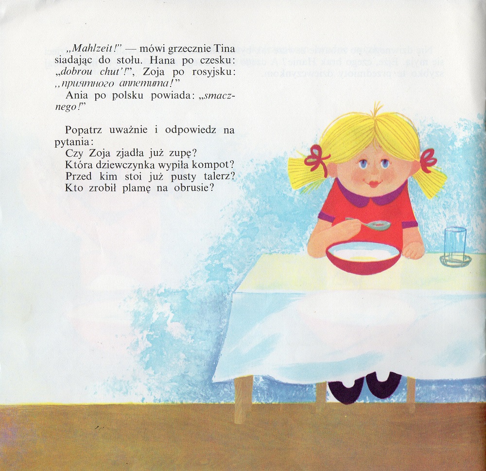To jedna z moich pierwszych książek wypożyczonych samodzielnie z bibilioteki dziecięcej. Przyciągnęły mnie chyba te cztery grzeczne dziewczynki na okładce. Po latach w pamięci zostały mi tylko te cztery dziewczynki, i że jedna była z ZSRR i miała na imię Zoja. I tym tropem odnalazłam tę książeczkę Mirosława Pokory, którego ja najbardziej pamiętam jako ilustratora książek „Pan Maluśkiewicz i wieloryb” i „Oj tato, co robisz?”.