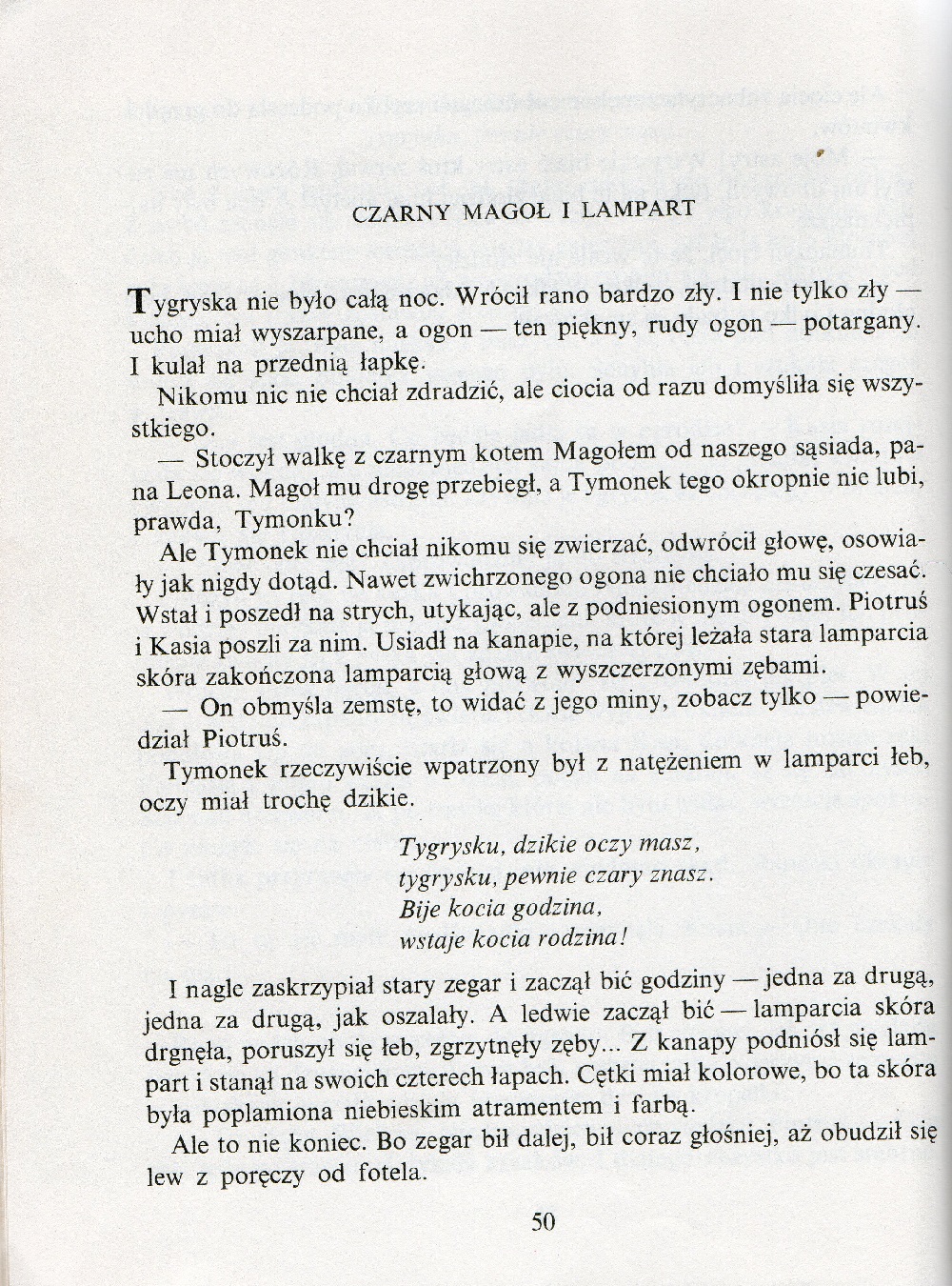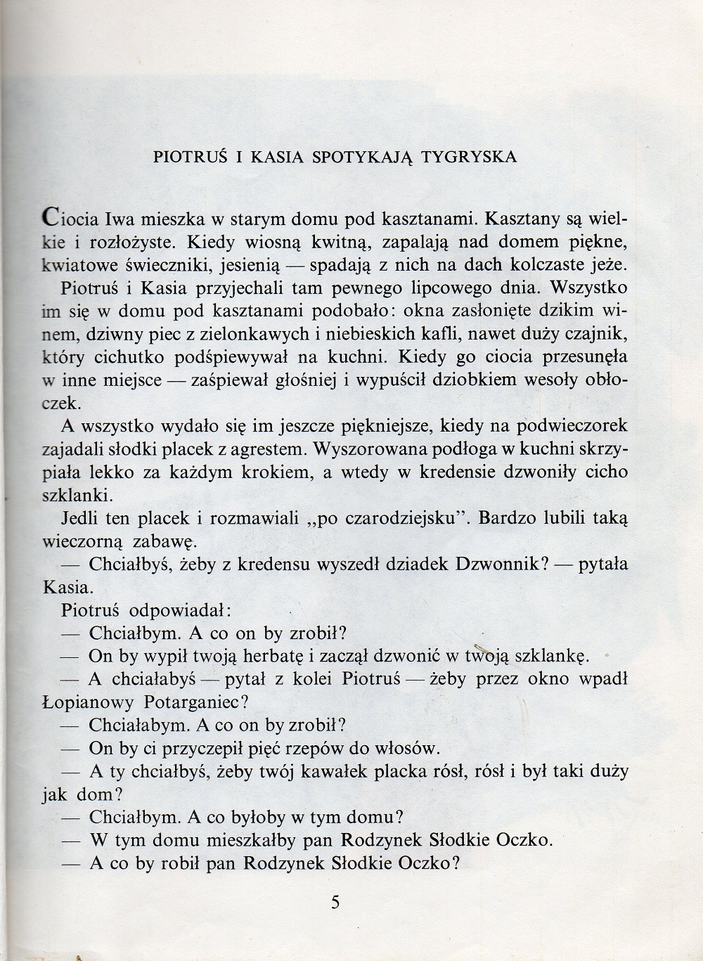 Pierwszy tom przygód Kasi i Piotrusia (drugi to „Za złotą bramą”). Rodzeństwo przyjeżdża na wakacje do cioci, która mieszka w starym domu z ogrodem. Zarówno dom jak i ogród pełne są magicznych postaci, ożywających w dziecięcej wyobraźni. Magia czai się wszędzie, w domowych sprzętach, w kroplach deszczu, w makówkach. W dziupli starej wierzby mieszka czarownica, a kot zmienia się w tygrysa.
